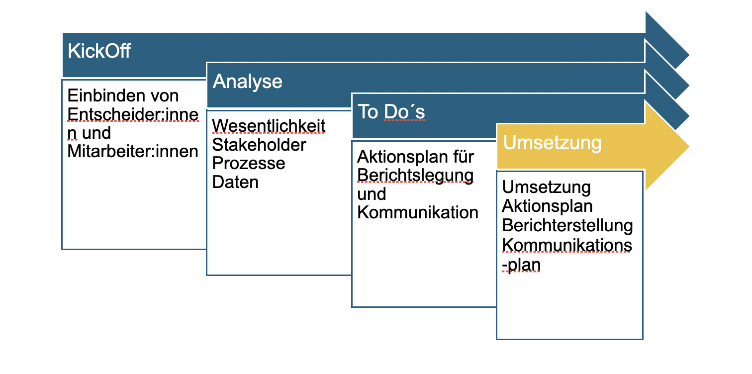 Gemeinsam mit dem Management klären wir in einem Vorgespräch die konkrete Zielsetzung für die Umsetzung der ESG Richtlinie.